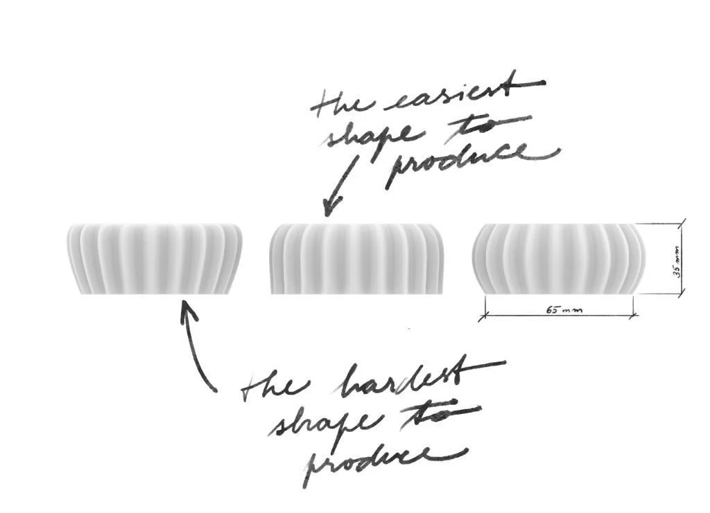 Process - designing the form, 3D print the prototype, plaster form making, porcelain casting, glazing, firing